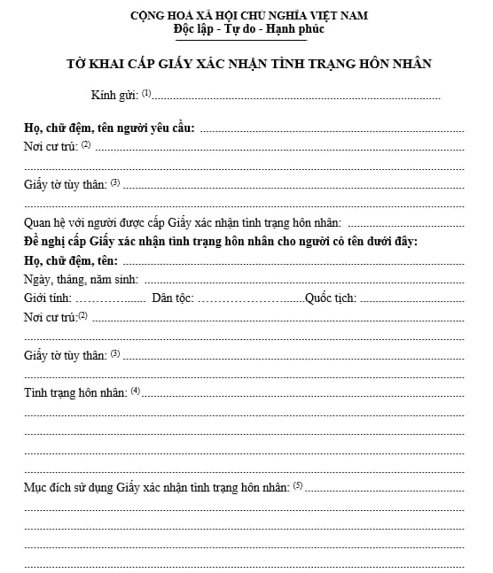 - Giấy xác nhận tình trạng hôn nhân (đã cấp trước đó – nếu có). Nếu không nộp lại thì phải trình bày rõ lý do.