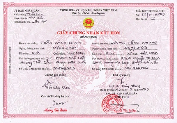 – Ngày, tháng, năm đăng ký kết hôn;